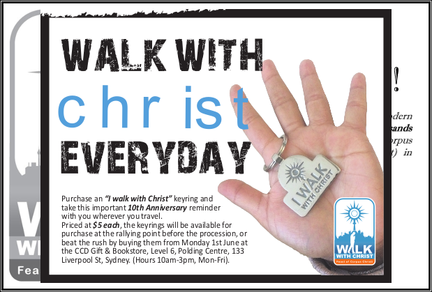Please remember to write your prayers and petitions in your school or parish “Book of Life” which will be carried in the Procession and placed before the Blessed Sacrament at the Cathedral Forecourt. For more information, please visit sydneycatholic.org/walkwithchrist or facebook.com/WalkWithChristSydney.