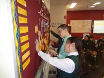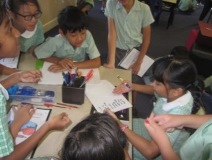 During Term Three 2014, Years 4, 5 and 6 implemented the ‘Design Thinking Process’ into the teaching of a Unit of work in Religious Education incorporating Immersion, Synthesis, Ideation, Prototyping, Feedback and Feedforward. Students and teachers participated in active discussions, purposeful research, exploration and rich learning experiences. The construction of each grade’s Learning Wall was developmental, building as the enquiry process unfolded. Students became a group of learners, discovering, recalling, remembering, recollecting and reconnecting what they had experienced and learnt together. They continually had the opportunity to scaffold their thinking, refine what they had been exploring, use hexagons to connect their ideas and create relationships between elements of what they have learnt and experienced together. Students framed a “How might we…” question that was worth exploring further, something authentic and purposeful where they could apply their learning to make a difference. It was an authentic opportunity to apply what had been learnt to purposeful enquiry.